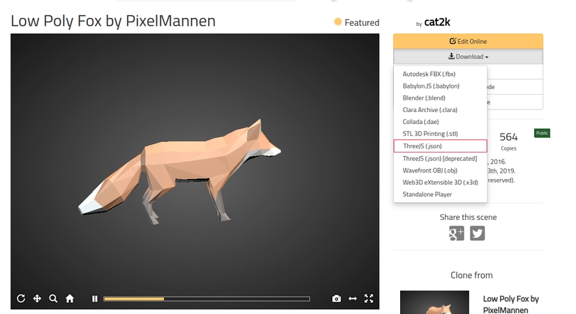 Trong VD này, mình sử dụng json model tải từ đây: https://clara.io/view/1a03ac6b-d6b5-4c2d-9f1a-c80068311396#