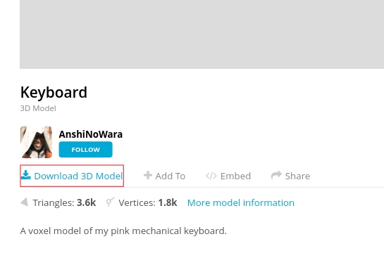 Với định dạng này thì trên sketchfab.com có sẵn để tải về, các bạn tìm 1 model có thể download free như dưới đây