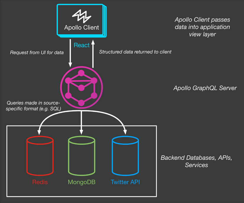 Nhiệm vụ của Apollo Client là gửi request tới GraphQL server thông qua các Query và Mutation, lấy dữ liệu từ server trả về lưu vào store (cấu trúc tương tự Redux nhưng có phần abstraction hơn).