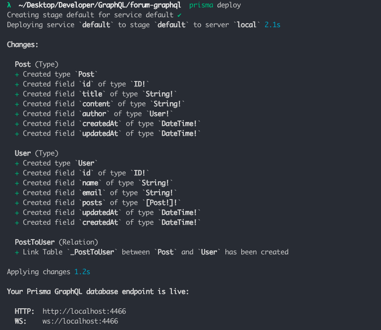 Và đây là kết quả, chúng ta cũng có thể kiểm tra trong Prisma Admin (http://localhost:4466/_admin)