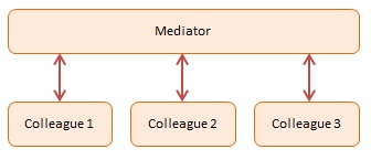 In the example code we have four participants that are joining in a chat session by registering with a Chatroom (the Mediator). Each participant is represented by a Participant object. Participants send messages to each other and the Chatroom handles the routing.
