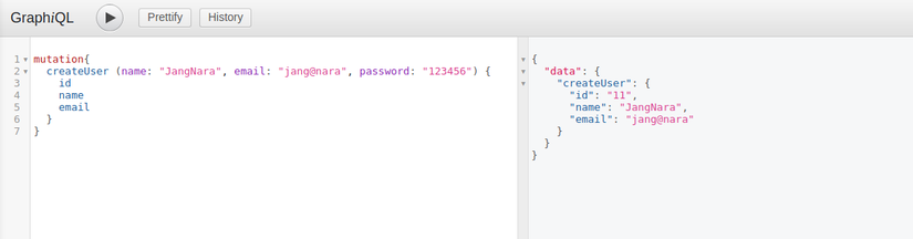 Chúng ta cũng đã tìm hiểu về các khái niệm về các đối số cho các trường. Trong trường hợp này, trường createUser nhận các đối số chỉ định name, email và password của người dùng mới.