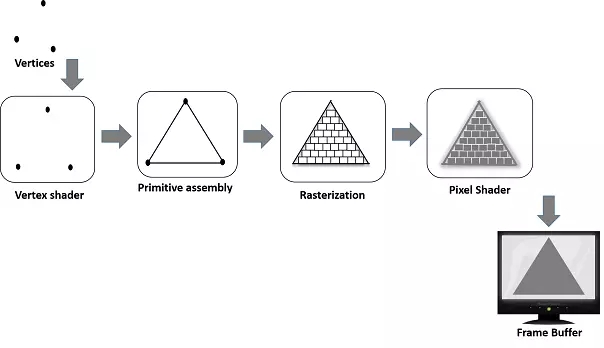 Dữ liệu ta truyền vào các shader xử lý là các đỉnh của các hình học mà ta muốn vễ. Sau khi được các shader xử lý, quá trình primitive assembly sẽ diễn ra để nối các đỉnh lại tạo thành hình cần vẽ.