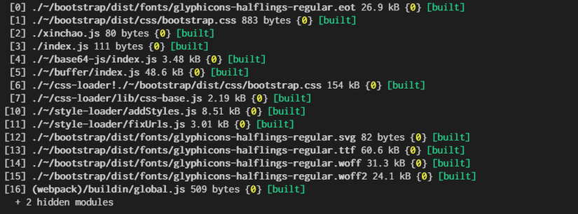 webpack. Nói chung nó là bắt nguồn của chiến tranh. Nó import từ thằng khác rồi thằng khác import từ thằng khác khác nữa từ đó sẽ kéo theo một chuỗi có hệ thống việc load các js module. Ở đây là fileindex.jsở trên.output-filename: là đầu ra của file sau khi