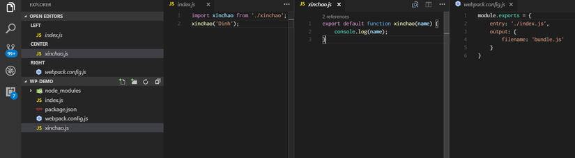 Thì import xinchao from './xinchao'chính là chỗ mà Webpack sẽ làm việc cho chúng ta.