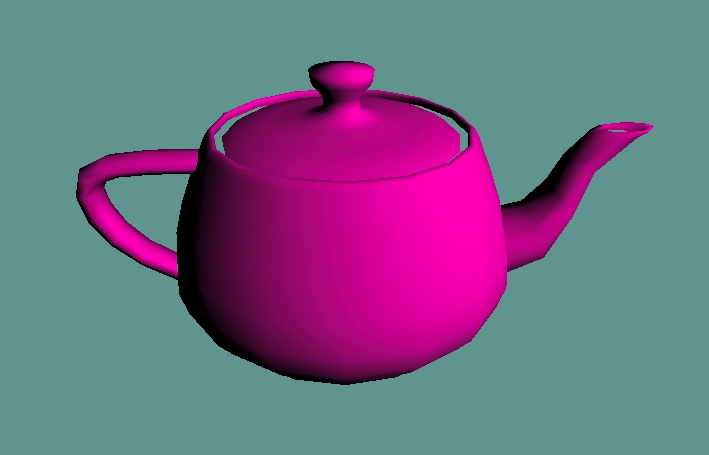 scene.add(light);Giờ thì có cái ấm trà (không hiểu sao lại là) màu hường rồi.