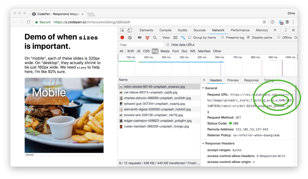 sizesBên cạnh srcset, một thuộc tính rất hay ho khác là sizes, nó cũng sẽ giúp trình duyệt có cơ sở để load hình nào