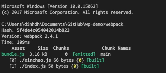 }Giờ chúng ta chạy lệnh webpack để run nhé.