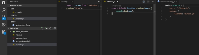 xinchao('xin chao');Thì import xinchao from './xinchao'chính là chỗ mà Webpack sẽ làm việc cho chúng ta.